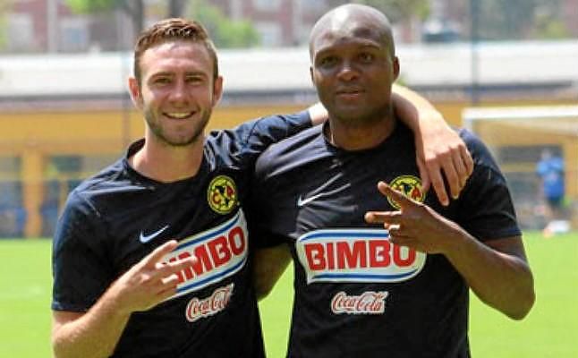 Miguel Layún y Aquivaldo Mosquera posan durante un entrenamiento con el América de México.Álvaro Palomo