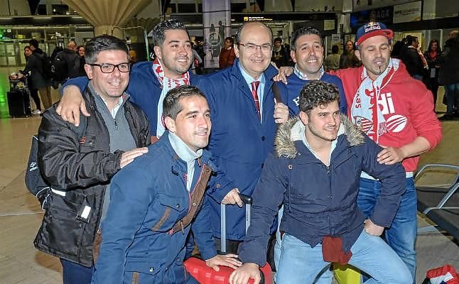 Sin embargo, seis de ellos han tenido la fortuna de viajar junto al equipo en el avión de la expedición que salía ayer para la ciudad alemana. Y es que estos seis aficionados del Sevilla, que se encontraron con el equipo en el aeropuerto de San Pablo, le trasladaron al presidente José Castro su problema: su vuelo debía partir hacia Múnich, vía Barcelona, pero les habían cancelado ambos.