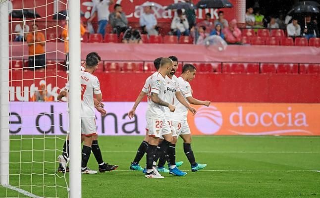 Once del Sevilla FC: David Soria; Layún, Pareja, Lenglet, Sarabia; Roque Mesa, Nzonzi; Sandro, Franco Vázquez, Nolito; y Ben Yedder.