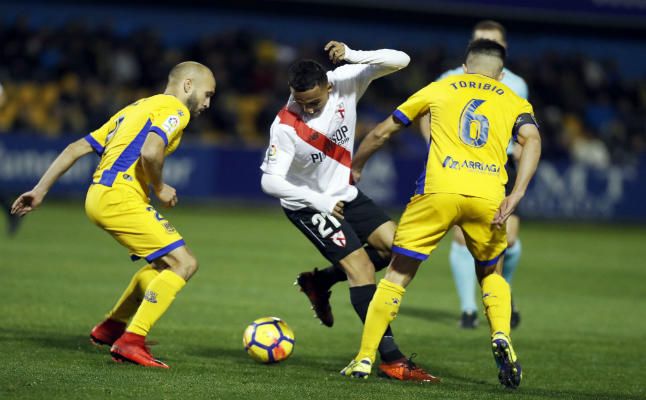Boutobba regatea a dos jugadores del Alcorcón.Manuel López