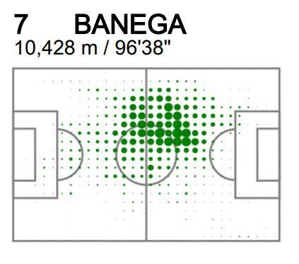 Por otro lado, Éver Banega fue el jugador que más distancia recorrió, con un total de 10,428 km, de los cuales, 4.935 km fueron con el balón en posesión.