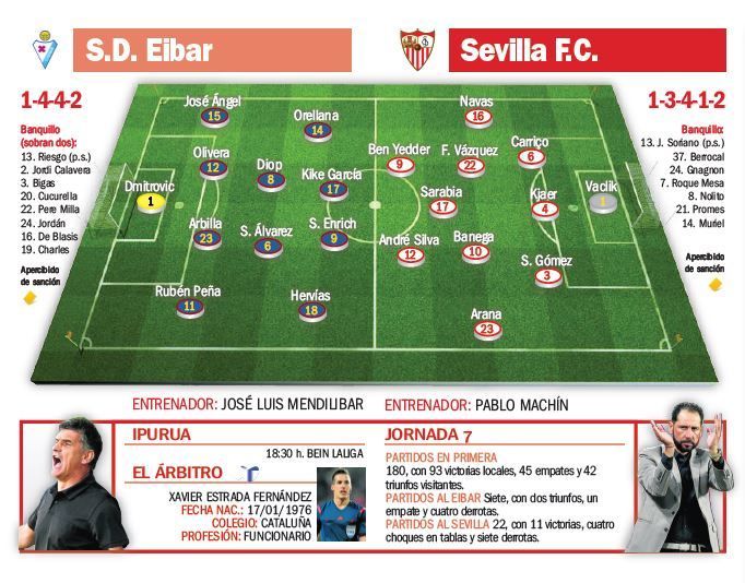 La espectacular reacción sevillista, con tres goleadas consecutivas, invita a continuar con la misma fórmula, por lo que se espera que Pablo Machín insista en los dos puntas para aprovechar su entendimiento y el estado de gracia de Ben Yedder y André Silva, que entre los dos ya suman diez goles en el campeonato liguero y amenazan al Eibar en una guerra muy diferente a la del miércoles pero igualmente importante. Porque los puntos en el barro valen y brillan tanto como los de las noches inolvidables.