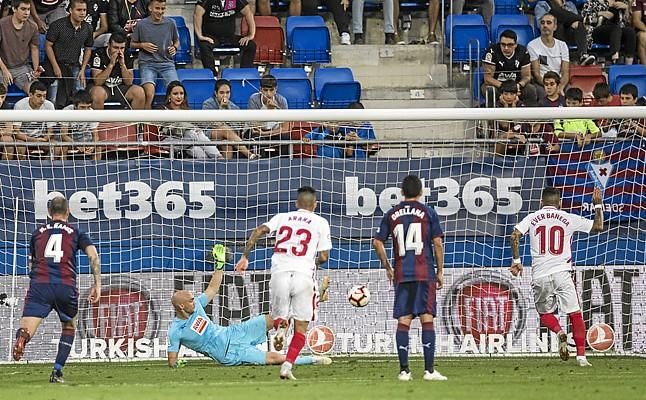 Y tardó sólo dos minutos en sumarlo con un robo en la banda zurda para que André Silva esperara la incorporación de Navas y se la diera para después rematar de espuela el servicio tenso del palaciego. 0-1. Latigazo de calidad. De eficacia para tomar una ventaja que cambió los tiempos de cada equipo, ya que el Eibar debía redoblar los esfuerzos y los riesgos con la consecuente apertura de espacios que los hispalenses maximizaron casi de forma inmediata. Así, después de la reacción anfitriona en forma de ronda de centro repelidos sin problemas por la zaga, el 'Mudo' avanzó al son de su talento y abrió a Navas, cuyo centro lo desvió con la mano José Ángel. Penalti transformado por Banega para el 0-2 y susto en la celebración por la caída de aficionados sevillistas al césped al ceder la valla de la grada. Este incidente interrumpió unos minutos el choque y en su reinicio se apreció que el Eibar había acusado este segundo mandoble.