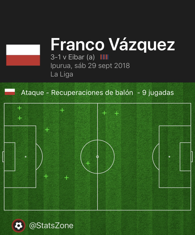 Recuperaciones de Franco Vázquez ante el Eibar: