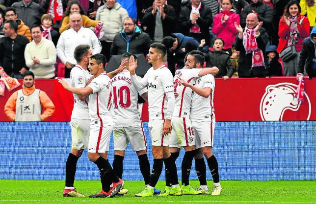 Entre las virtudes del Sevilla en la presente temporada destaca, sin duda, su productividad de cara a portería, lo que le ha aupado a la zona alta de la clasificación. No en vano, tras 17 jornadas de competición, el equipo de Machín se erige en el segundo más goleador de LaLiga con un total de 30 goles, sólo por detrás del Barcelona, con 48 dianas. Por ende, los nervionenses presentan una media que se aproxima a los dos tantos por choque, fruto de su talento del centro del campo hacia delante y de su eficacia coral, porque no hay ningún jugador que monopolice esta faceta.
