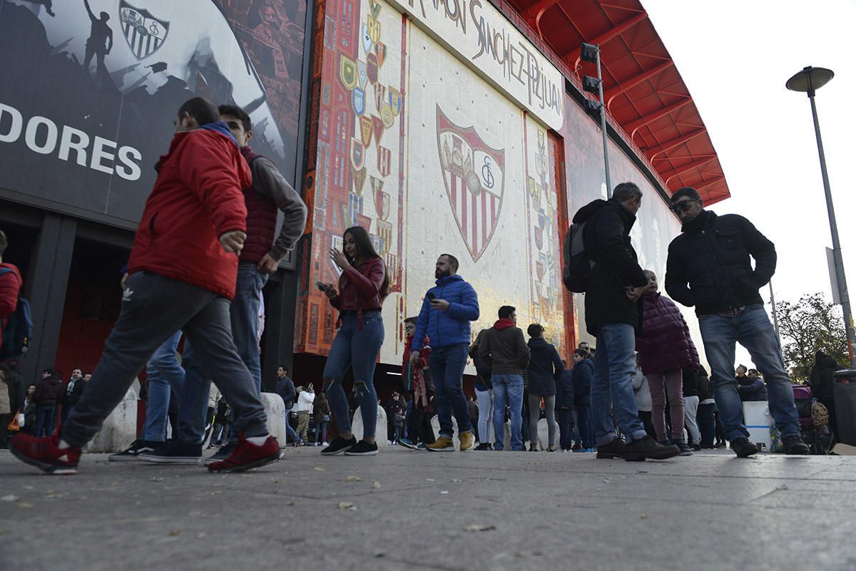 La afición del Sevilla se ha volcado con la sesión a puerta abierta programada por el Sevilla. Así accedían al Ramón Sánchez-Pizjuán. Según ha informado el club son más de 20.000 personas las que han presenciado el entrenamiento de los hombres de Machín en un ambiente muy festivo.