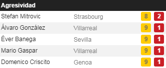 Hasta cinco apercibidosPara El Alcoraz tiene el Sevilla a cinco apercibidos: Éver Banega, Jesús Navas, Simon Kjaer, Sergio Escudero y André Silva, estando el argentino a punto de cumplir su segundo ciclo. Y es que el '10' blanquirrojo es el tercero más tarjeteado de las cinco grandes ligas, llevando ya 14 entre todas las competiciones y pagando, en este sentido, jugar como único pivote y no ser un futbolista de corte defensivo, más dotado para cortar el avance del rival sin incurrir en una infracción