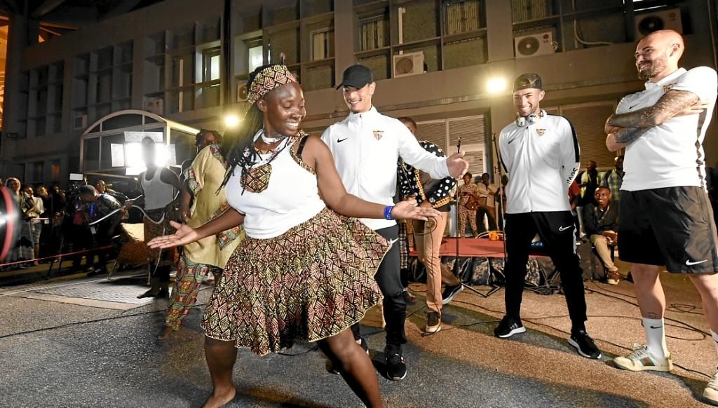 El Sevilla ha llegado a Tanzania a las 18:30 horas (una hora más en el país africano), donde ha tenido un recibimiento muy cálido, lo que da una muestra de la expectación que levanta el conjunto nervionense en territorio tanzano.