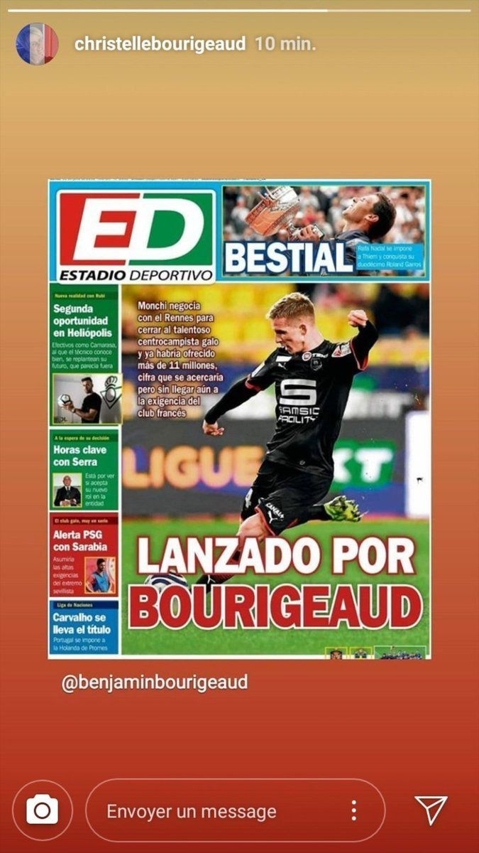 En cualquier caso, el futbolista ya sueña con la opción de vestir de blanquirrojo. También su madre, que ha compartido en Instagram una imagen de la portada de ESTADIO en la que Bourigeaud es protagonista.