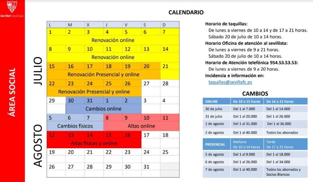 La campaña de renovación para socios ya abonados comienza de forma online, exclusivamente, del 1 al 14 de julio. Posteriormente, del 15 al 20 de julio y del 22 al 26 del mismo mes se podrá hacer de forma presencial -pudiendo hacerse también estos días de forma online-.