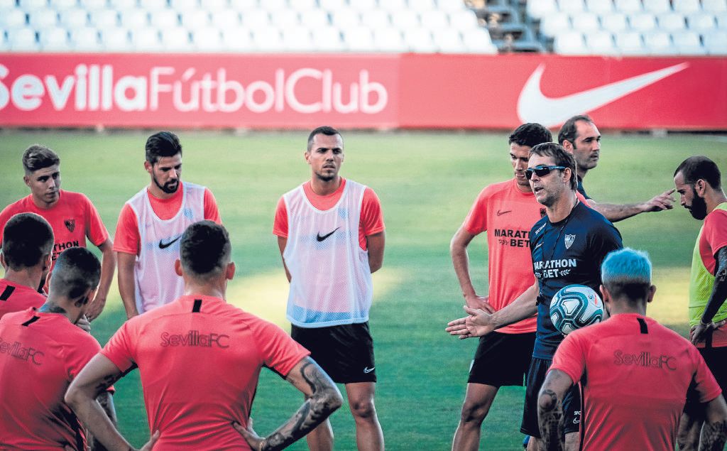 En lo que a resultados se refiere, la pretemporada sevillista está siendo inmaculada hasta la fecha. Ocho amistosos, ocho victorias. Pero a Lopetegui lo que le importa es que su equipo vaya asimilando sus ideas y acumule la necesaria carga de trabajo que debe servir de base para una larga campaña. En este sentido, las sensaciones también son positivas, pues el equipo, con el físico que le han inyectado los fichajes de Monchi, básicos para subsanar esa evidente carencia, da muestras de estar asimilando de forma veloz los conceptos del técnico vasco: orden defensivo, presión incisiva tras pérdida y verticalidad, replegando en pocos metros y atacando con transiciones rápidas, con laterales largos y extremos a pierna cambiada, sin renunciar al balón en largo en la salida.