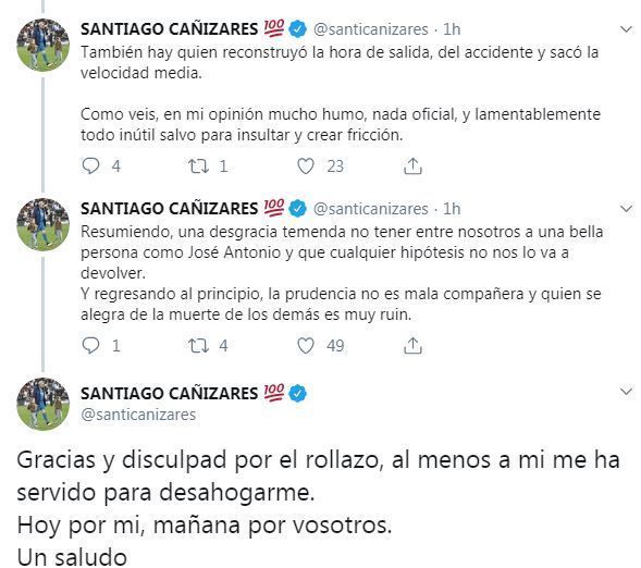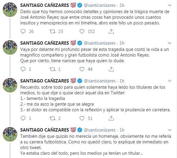Uno de los que ha reaccionado a esta versión ha sido Santiago Cañizares, que en su día protagonizó una polémica al señalar que Reyes no merecía un homenaje porque había cometido una imprudencia. "Reyes no merece un homenaje como si fuera un héroe, pero eso no quita que lamente lo ocurrido y que rece por sus almas", dijo entonces.