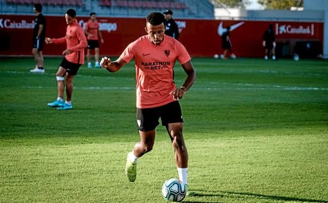 Jules Koundé, en un entrenamiento con el Sevilla.F.R.
