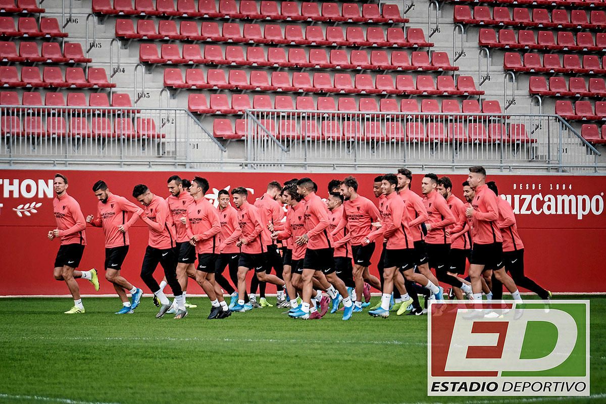 El entrenamiento contó con la presencia en las gradas del Jesús Navas del director general deportivo, Monchi, que estuvo atento a las evoluciones de los suyos durante una sesión en la que el protagonista fue nuevamente el balón y se trabajaron diversos aspectos tácticos.