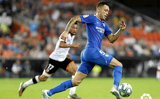 Ocampos conduce el balón en Mestalla.Alejandro Sáez