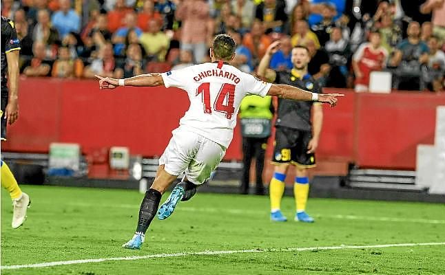 Chicharito vio portería ante el APOEL en el Pizjuán.Daniel Suárez
