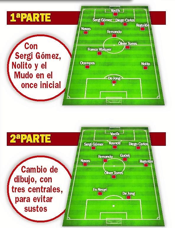 Nolito y De Jong, quienes generaron peligro y goles, dieron también la razón en sus apuestas al técnico vasco, que en verano instó a Monchi a que firmase a un Fernando que se multiplicó y que falló sólo dos pases en todo el partido (dio 50 bien de 52).