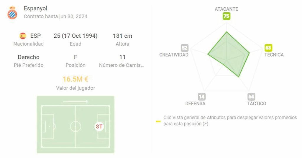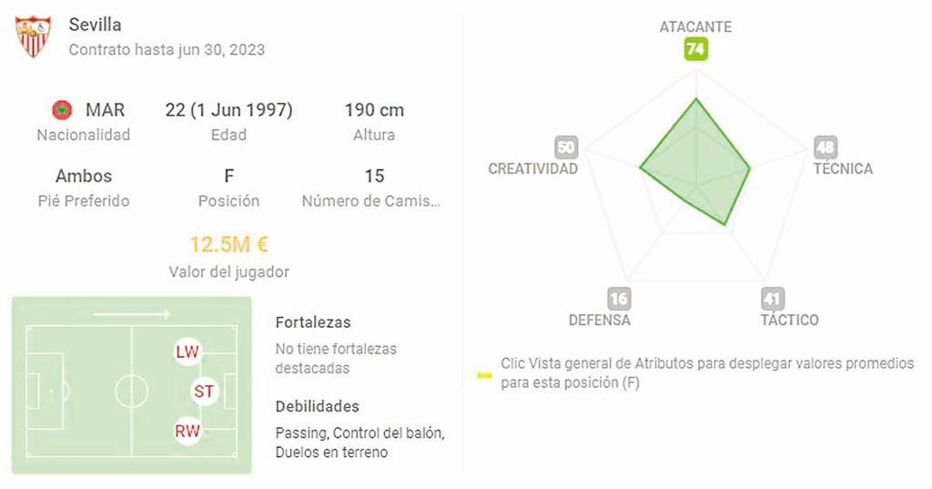 Más aplicado en defensa, sin embargo, se presenta el sevillista (16 ante 14), estando la principal diferencia entre uno y otro en lo técnico y lo táctico (como demuestran los gráficos que acompañan la información), donde se impone claramente el espanyolista. Y es que las grandes debilidades de En-Nesyri son el 'passing', el control del balón y los duelos en suelo, según las nuevas tecnologías. Su estatura, edad y estilo de Lopetegui son otras de las razones de su fichaje.