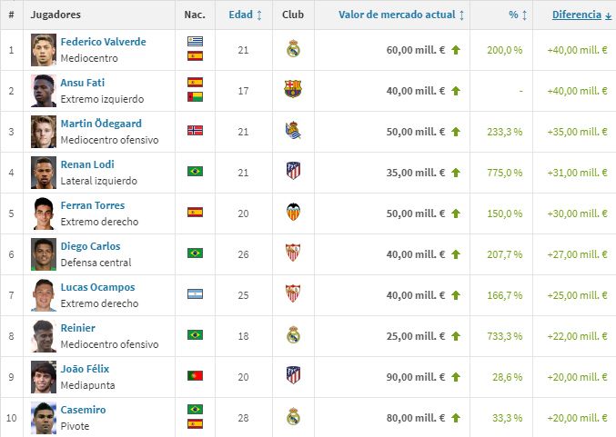 Los mayores saltos de valor de mercado en LaLiga: