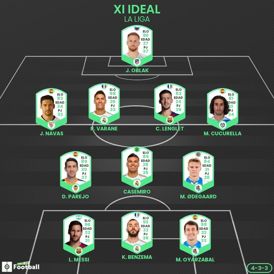 El palaciego ocupa el lateral diestro de una alineación integrada por las principales estrellas de LaLiga española. Así, la portería la ocupa Oblak, mientras que la defensa la completan Varane, Lenglet y Cucurella.