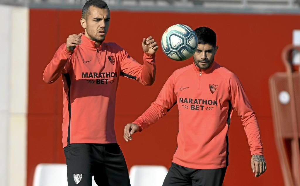 Jordán, con Banega de fondo, en un entrenamiento.F. R.