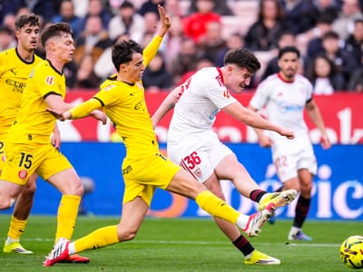 Luuk de Jong celebra su gol conseguido en el Wanda.