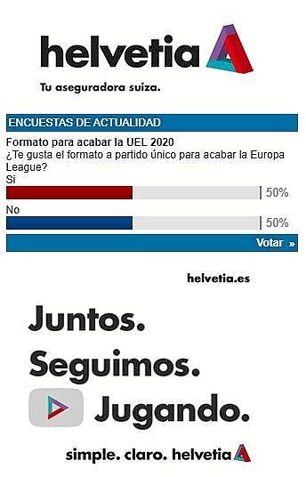 Sin duda, se trata de un formato novedoso que acumula a la par partidarios y detractores. Eso se desprende de la 'Encuesta Helvetia' realizada por ESTADIO Deportivo, a través de la cual hemos querido pulsar la opinión del sevillismo al respecto: ¿Te gusta el formato a partido único para acabar la Europa League?