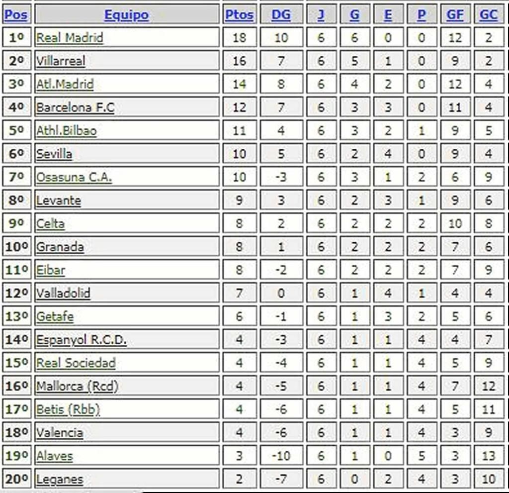 En los beneficiados destaca, sobre todo, el Villarreal, con 16 de 18; el Real Madrid, con pleno y liderato; o el Atlético, que ha recuperado su puesto de Champions. Muy diferente le ha sentado el parón a la Real Sociedad, con sólo cuatro puntos, tres de ellos sumados el jueves ante el colista Espanyol; al Barcelona, que ha dejado escapar seis puntos y el primer puesto; o al Valencia, al que se le ha complicado hasta Europa.