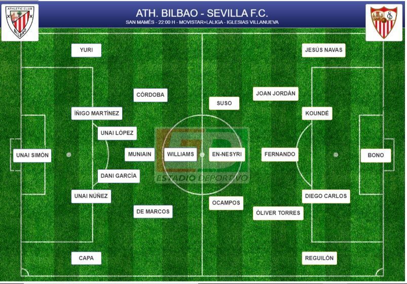 Unai Núñez suplirá al zaguero y entre De Marcos y Sancet saldrá el sustituto del navarro; dependiendo de si Muniain juega por detrás de Williams o si actúa en la banda derecha, con Iñigo Córdoba ocupando el costado izquierdo del ataque rojiblanco, que tratará de avanzar en su lucha por estar en Europa ante un Sevilla que suma cinco victorias y seis empates seguidos y que no pierde desde el 9 de febrero (2-1 en Vigo). Son números dignos de una Champions con apellidos vascos, objetivo que dejó encarrilado tras ganar al Eibar y que debe confirmar hoy en Bilbao y la semana que viene en San Sebastián. ¡Aúpa, pues!