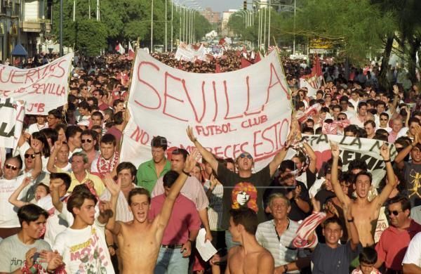 En la misma tarde del 1 de agosto, se convocó para el día siguiente una manifestación en la capital hispalense, a la que acudieron unos treinta mil sevillistas -una multitud ingente para una época sin redes sociales y ni siquiera uso generalizado de la telefonía móvil-, entre ellos los jugadores del plantel profesional.