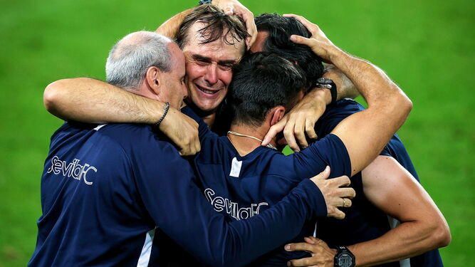 Julen Lopetegui sigue sin digerir del todo la enorme satisfacción con la que ha acabado su primera temporada en el Sevilla FC, cuarto clasificado en LaLiga y con doble billete para la próxima Champions, pues también ha ganado la Sexta Europa League. El de Asteasu ha explicado sus emociones en una entrevista para Fox Sports con su entrenador Carlos Aimar, que le dirigió en el Logroñés y ante el que se ha mostrado mucho más suelto que en sus ruedas de prensa. Está feliz y su familia, según ha relatado, lo está tanto como él... o aún más.
