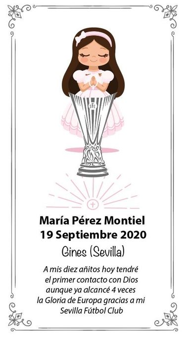 Todo ello, con un mensaje que ha causado sensación: “A mis diez añitos hoy tendré mi primer contacto con Dios aunque ya alcancé 4 veces la Gloria de Europa gracias a mi Sevilla Fútbol Club”. Y es que María, como su padre, es sevillista y, al nacer en 2010, el pasado agosto celebró su cuarta Europa League.
