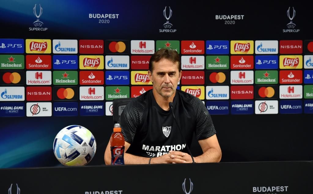 El técnico del Sevilla FC, Julen Lopetegui, resaltó en vísperas de la Supercopa de Europa que su equipo disputará este jueves contra el Bayern de Múnich en Budapest que "todo queda en un segundo plano", incluidas las vicisitudes del mercado, "por jugar un partido que tanta ilusión despierta", como esta final y, además, ante "un rival grandioso". En una rueda de prensa telemática, antes del entrenamiento oficial de su plantilla en el Púskas Arena de la capital húngara, Lopetegui calificó este miércoles al campeón alemán como "un equipo de un nivel que hace tiempo no aparecía en Europa".