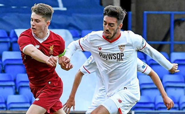 Fran Carmona, durante el partido de la Youth League contra el Liverpool.R.S.