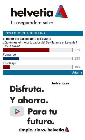 Pero para la afición, el mejor del choque ante el cuadro levantinista volvió a ser Jesús Navas, convocado este viernes por Luis Enrique para la ’Roja’. Apenas hay dudas al respecto. Hasta un 67% de los participantes en la ‘Encuesta Helvetia’ lanzada por ESTADIO Deportivo consideran que el palaciego fue el sevillista más determinante, pues de sus botas salió el centro que En-Nesyri transformó en gol, firmando de este modo su segunda asistencia en esta Liga, tras la que le dio a De Jong ante el Cádiz.