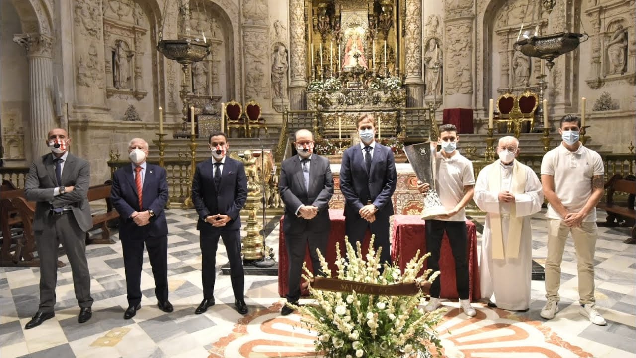 La pandemia del coronavirus ha modificado muchos de los hábitos de la vida cotidiana. También el fútbol se ha visto directamente afectado por sus consecuencias. Pero hay cosas que no cambian. Y como marca la tradición, el Sevilla FC ha realizado este viernes su ofrenda floral ante la Virgen del Reyes, patrona de la Archidiócesis, como siempre hace al comienzo de cada temporada.