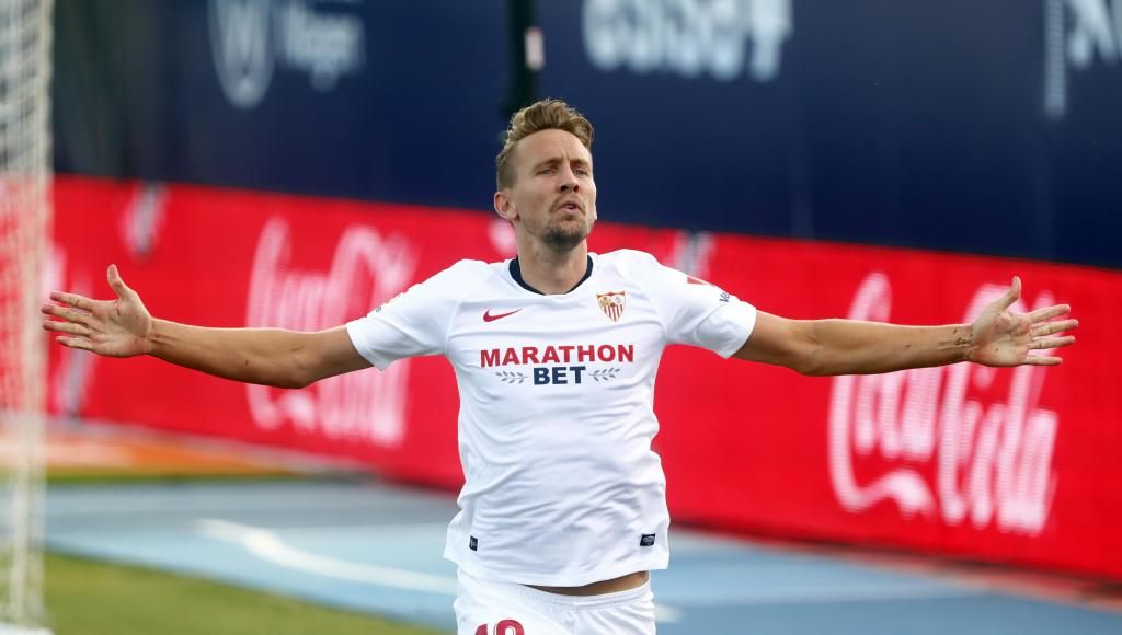 Luuk de Jong, celebrando un gol con el Sevilla FC.A. Sáez