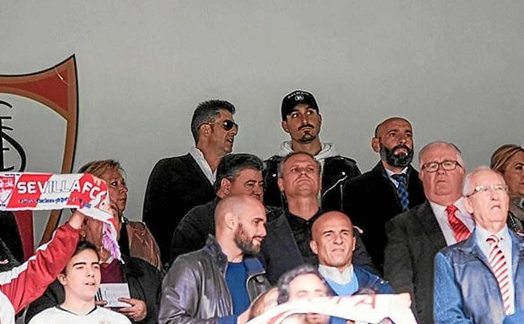 Campaña, en el Sánchez-Pizjuán, junto a su agente y Monchi.A. S.