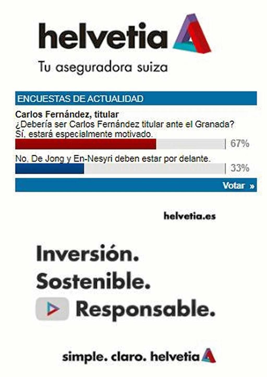 Por eso, en ESTADIO Deportivo hemos querido consultar a nuestros lectores su opinión al respecto y, si de ellos dependiera, darían la titularidad en la punta de lanza a Carlos Fernández este sábado. Como era de esperar, la mayoría de los encuestados en nuestra #EncuestaHelvetiaED ha mostrado su confianza en el canterano, sobre el que hay depositadas muchas confianzas entre el sevillismo. El 67% de ellos, por tanto, confía en su motivación para afrontar el reto de ser titular y salir victorioso de esa hipotética primera prueba.