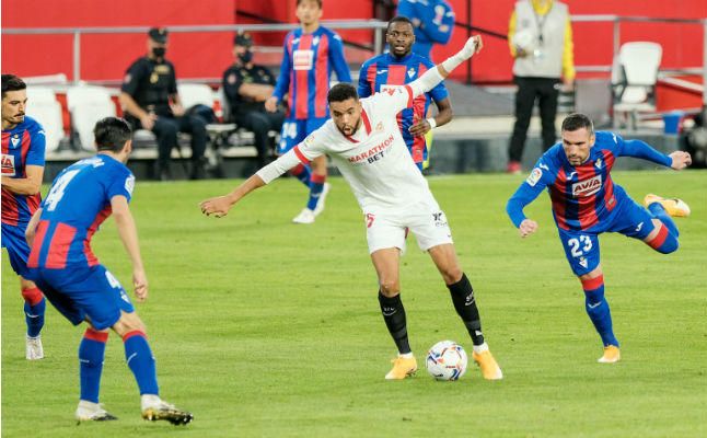 La derrota contra el Eibar ha terminado por poner de manifiesto los problemas del Sevilla con el gol. Hacía 13 meses que no perdía dos jornadas seguidas y pese a que cuesta pensar que un equipo que se alzó con la cuarta plaza la pasada temporada y con su sexta Europa League, tenga problemas con la finalización, a día de hoy la pegada nervionense es de la mitad de la tabla. Con cinco jornadas disputadas, los sevillistas suman cinco goles, es decir, una media de un tanto por choque, unos guarismos que le situán en la undécima plaza de esta hipotética clasificación, misma media que escuadras como Cádiz o Elche.