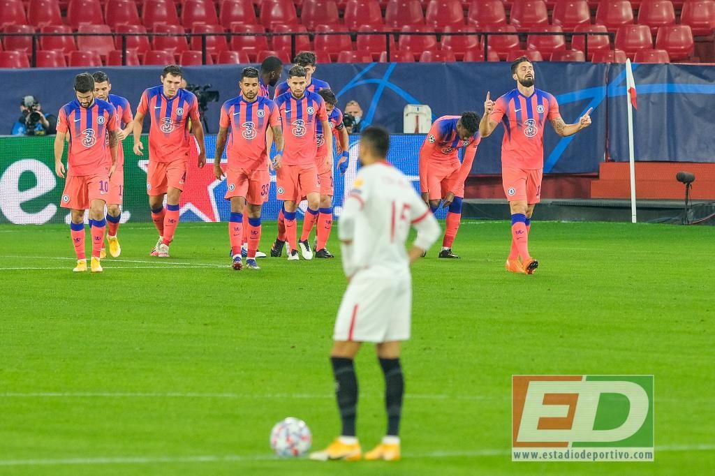 Partido de los grandes. Escaparate europeo, mundial más bien, para el Sevilla. Millones en juego. La primera plaza del grupo de Champions para buscar un cruce mejor en el sorteo de los octavos de final. La posibilidad de superar al Chelsea para seguir ganándose el respeto de los poderosos. La ilusión de unos aficionados que, aunque no pueden acudir al campo, estaban especialmente motivados con la cita. Pero todo ha acabado en gran decepción y en un ridículo que queda para la historia (encuentro 100 en Europa en el Sánchez-Pizjuán) y para gloria de Giroud, que hizo cuatro goles a un magnífico debutante, el meta de la cantera Alfonso.