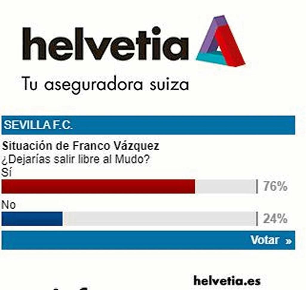 Un 76% de los participantes instan al director deportivo a dejar salir libre a Franco Vázquez al considerarlo lo más lógico a estas alturas mientras que un 24% estima que debe mantenerse firme para sacar algo de caja por un futbolista de un talento indiscutible.