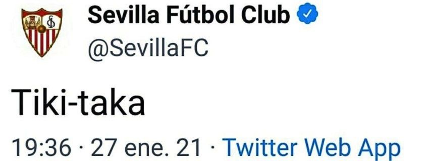 En concreto, lo único que ponía el tuit era 'TikiTaka'. Y no era para menos, pues el gol del Sevilla es de los que se van a repetir una y otra vez por televisión a lo largo de la temporada. Un auténtico golazo.