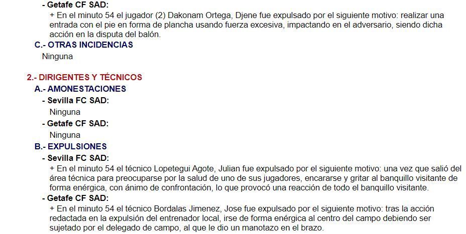 La redacción del acta del polémico duelo entre Sevilla FC y Getafe CF no incluye insultos, pero da pie a duras sanciones para los entrenadores Julen Lopetegui y José Bordalás, expulsados por Juan Martínez Munuera (Comité Valenciano) tras mantener un duro encontronazo dialéctico que continuó ya con ambos fuera del terreno de juego y que no llegó a las manos gracias a la intervención de varias personas.