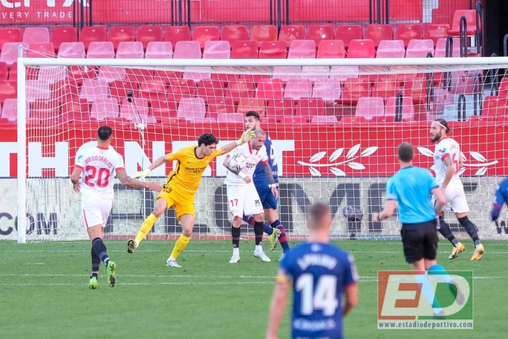 Especialmente llamativa fue su respuesta al cabezazo de Rafa Mir, sacando su mano izquierda para enviar a córner el balón en una acción plena de reflejos que ha despertado la admiración de todos, también del que posiblemente sea el mejor portero de la historia del Sevilla FC, Andrés Palop.
