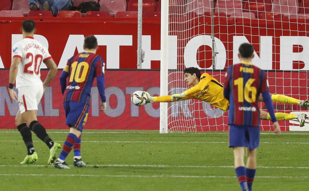 Yassine Bounnou, 'Bono', ha fijado el nuevo récord de imbatibilidad del Sevilla en Liga en 556 minutos. El gol de Dembelé en el minuto 29 de partido, tras un pase medido de Messi, ha acabado con una racha que arrancó el pasado 19 de enero y que ha llevado al meta marroquí a batir la marca que obraba en poder de Beto Pimparel.