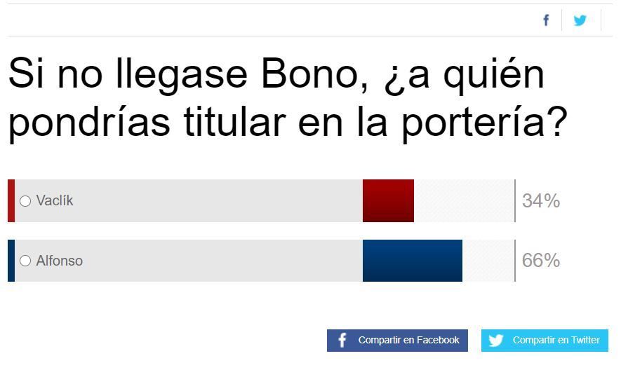 Los dos últimos encuentros disputados por el checo, la vuelta de las semifinales de Copa ante el FC Barcelona, en la que cayeron eliminados, y el encuentro ante el Elche en Liga, han dejado muy señalado al meta de Ostrava. Puede que por ello, Alfonso haya ganado enteros entre los aficionados sevillistas y que Vaclik haya perdido su sitio.