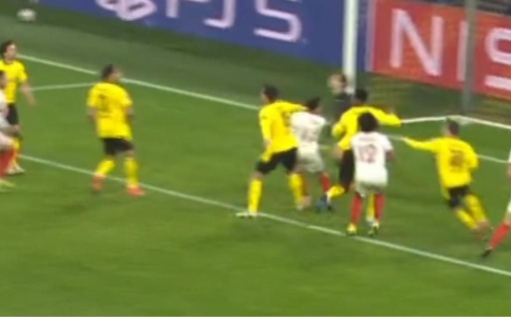 El final del partido en el BvB Stadion de Dortmund no estuvo exento de polémica. Y es que con el Sevilla volcado en busca del tanto que le permitiera llevar la eliminatoria a la prórroga, Munir fue derribado en el área en uno de los últimos balones colgados por el conjunto de Nervión. Los jugadores nervionenses protestaron la jugada e incluso el colegiado turco Cakir lo consultó con la sala VOR pero finalmente acabó decretando el final de partido.