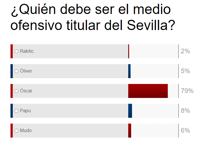 Sin rendir a gran nivel Rakitic, Ólivier, Papu ni el Mudo, con la mente ya en otra cosa, extraña bastante que el técnico vasco le esté dando tan poca bola al canterano del Real Madrid, no obstante, y parece que es algo en lo que coinciden los aficionados del Sevilla FC, quienes estiman que Óscar debería ser el medio ofensivo titular del equipo.
