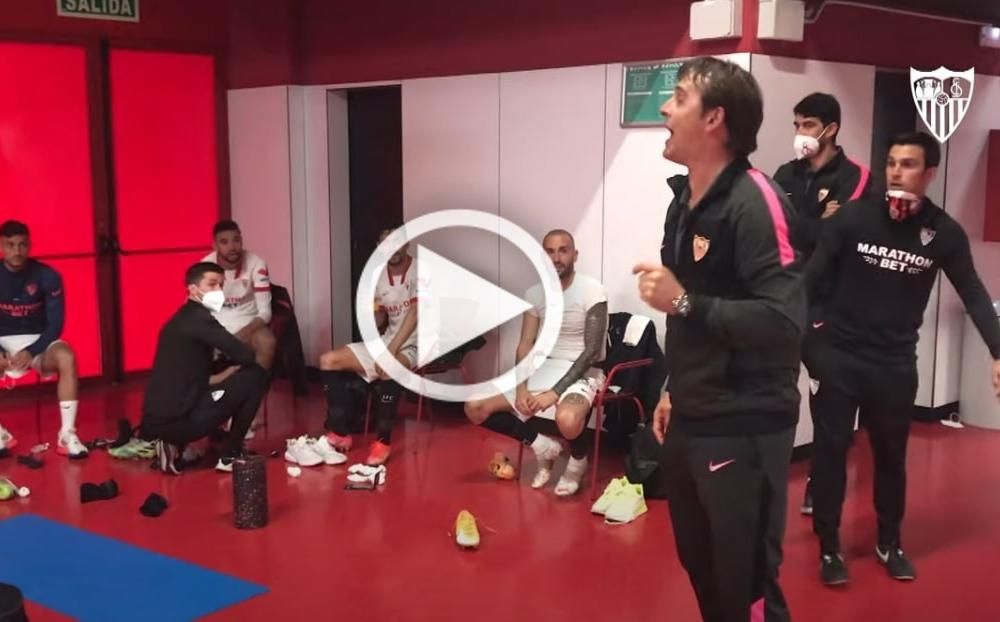 En el documento, que se reproduce abajo, se puede ver a un contentísimo Julen Lopetegui recibiendo a sus jugadores con aplausos, junto a su cuerpo técnico, y muchos abrazos, también del presidente, José Castro.. "¡¡Ahora, sí que estamos embarazados. Eestamos en Champions. Ahora, vamos a por cada partido. Ahora, sí!!", gritaba el vasco, mientras que su plantilla gritaba: "¡¡Vamos, a muerte!!". Era el epílogo, aunque luego se pudo ver el sufrimiento por el error de De Burgos Bengoetxea, que mandó volver a los futbolsitas al terreno de juego para disputar un minuto extra. Rakitic abogaba por no hablar demasiado, aunque Ocampos no ocultaba que "quedan cinco finales para ilusionarse e ilusionar", avisando de que "darán pelea hasta el final".